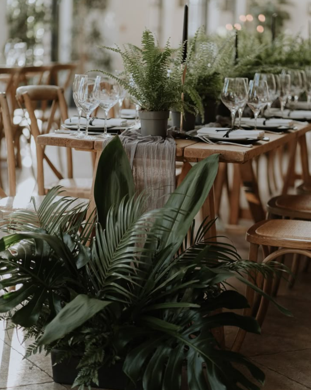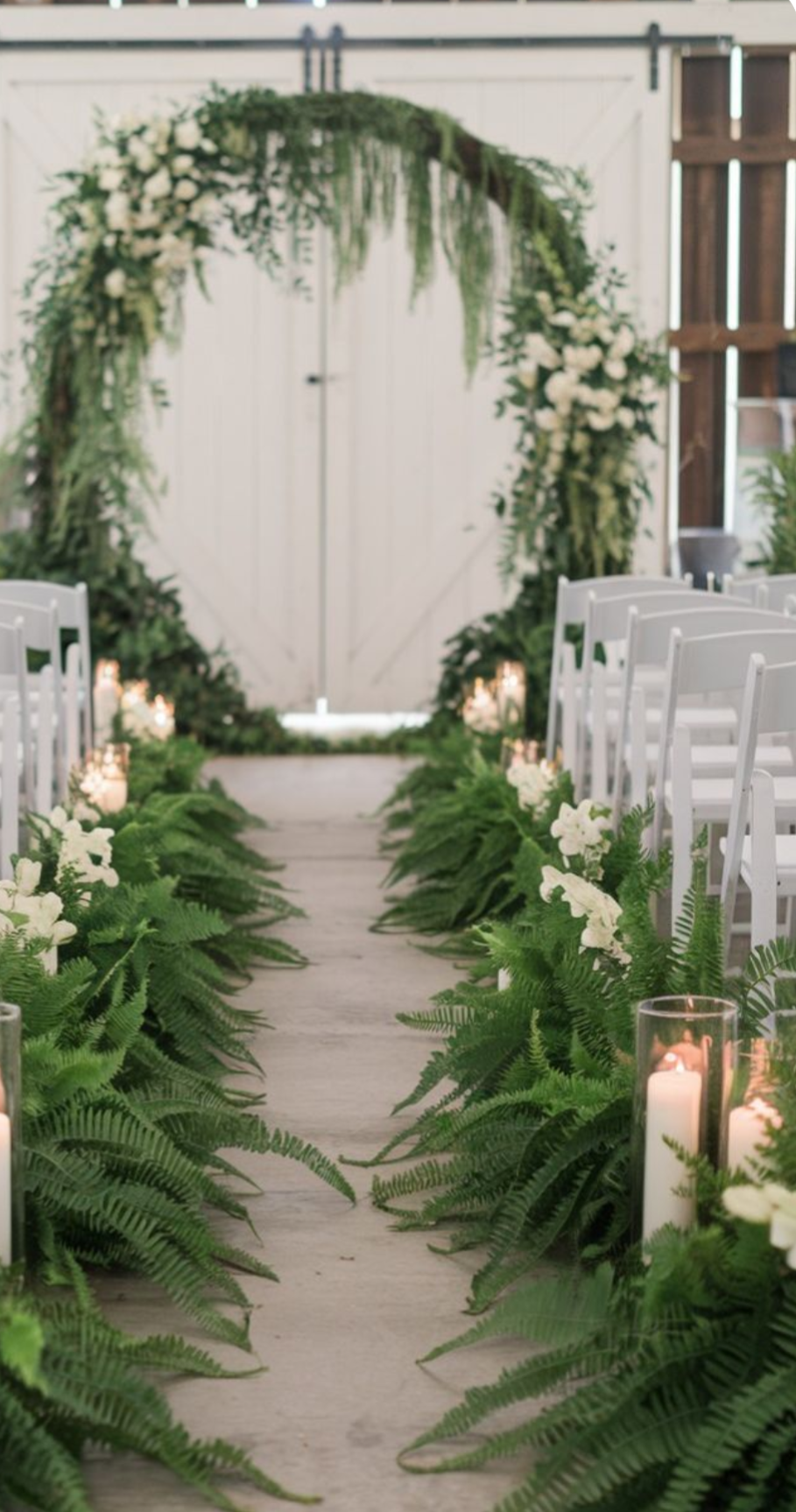 Eden is fresh and green, big bold leaves as your focal features, we have plenty of greenery to do arches, arrangements, trees for centre pieces/decor, etc.