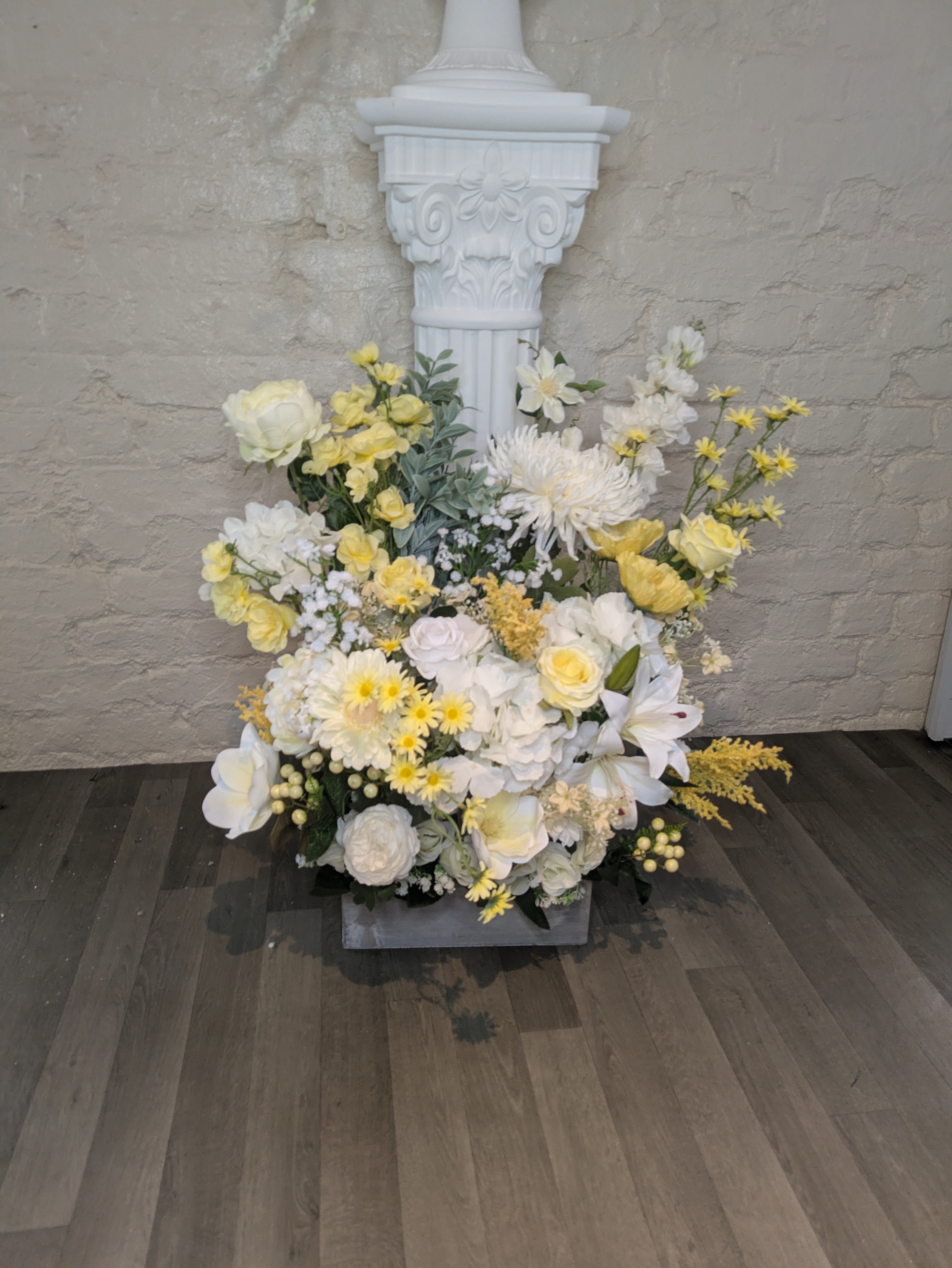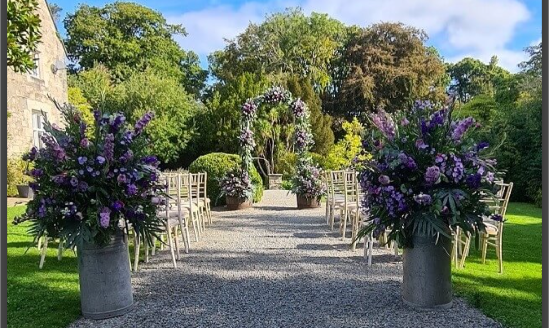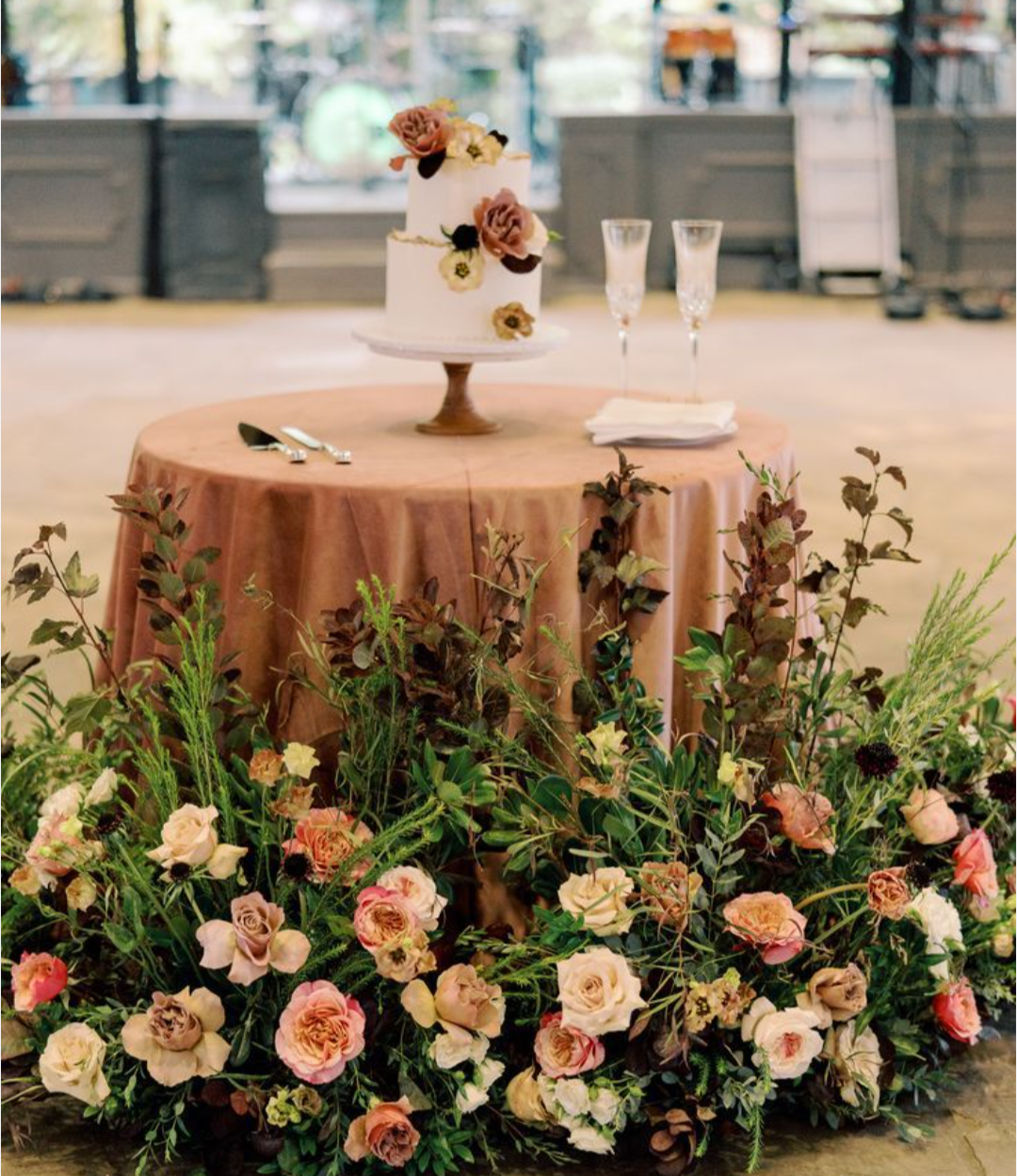 This is a curved arrangement to go around your cake table (usually consisting of 3 of our 60cm floor meadows